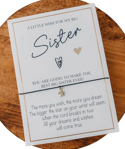 New Big Sister Gift Wish Bracelet - New Baby Arrival - Congratulations Card – Sibling Keepsake for Daughter, Son or Child