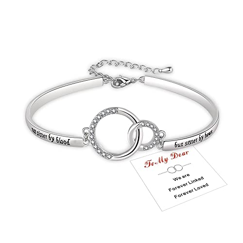 MYSOMY Not Sister by Blood but Sister by Heart Bracelet Best Friends Gifts for Sister in Law Soul Sister Gifts Unbiological Sister Gifts (White Gold)