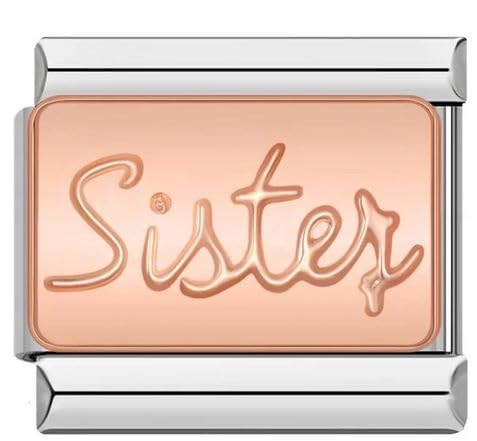 M&S A-Z Rose Gold Family Mum Daughter Grandad Grandma Sister Brother 9mm Italian Charm Compatible With Nomination Bracelet (Sister)