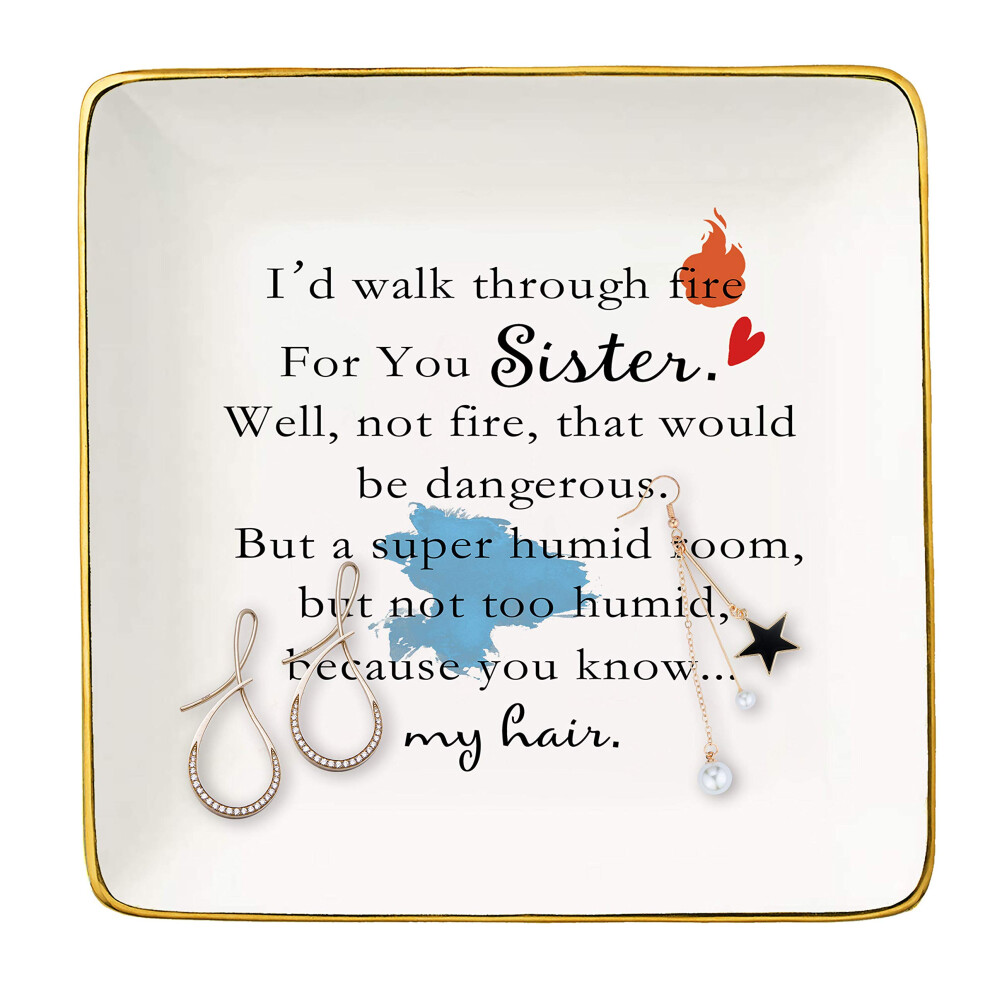 Id Walk Through Fire For You Sister Ceramic Jewelry Holder Ring Dish Trinket Tray Christmas Birthday Graduation Gifts For S