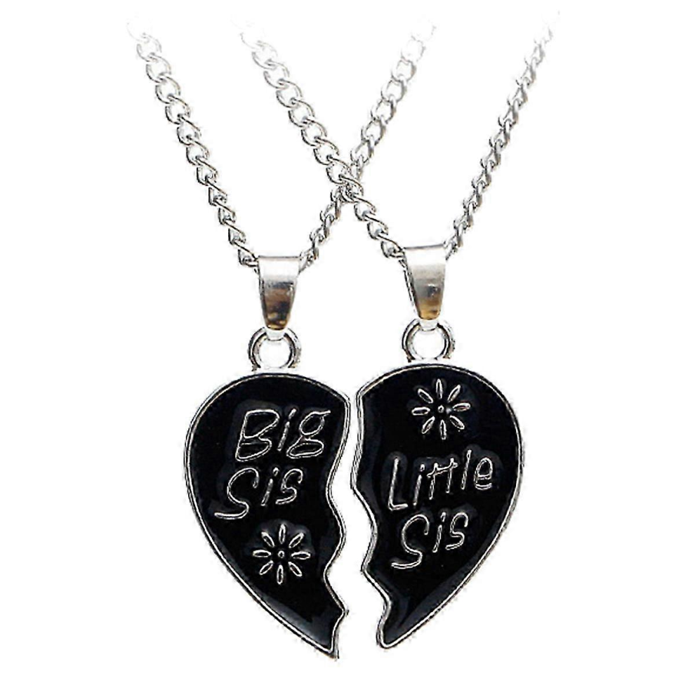 Puzzle Heart Pendant Necklace Little Big Sister Forever Necklaces Jewelry Graduation Gift (Black)
