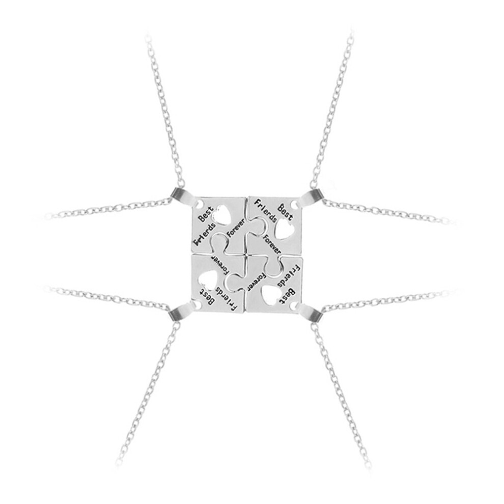4Pcs Silver Puzzle Sister Necklaces Best Friend Friendship Jewelry Set