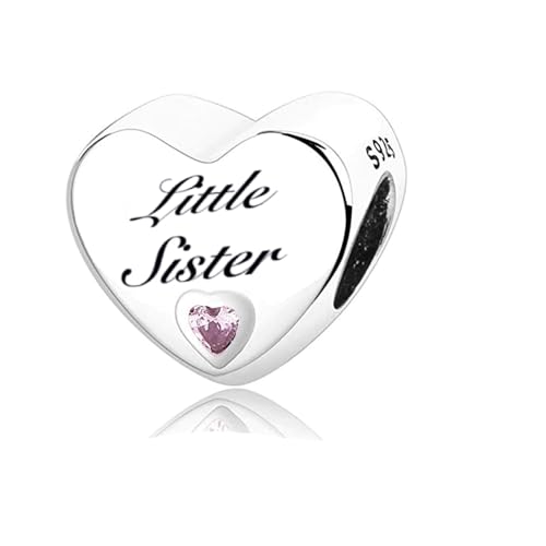 MsRosy New Women's S925 Sterling Silver Hearts Charms Moments For Bracelets and Necklaces Gift For All the Family and Friends (Little sister charm)