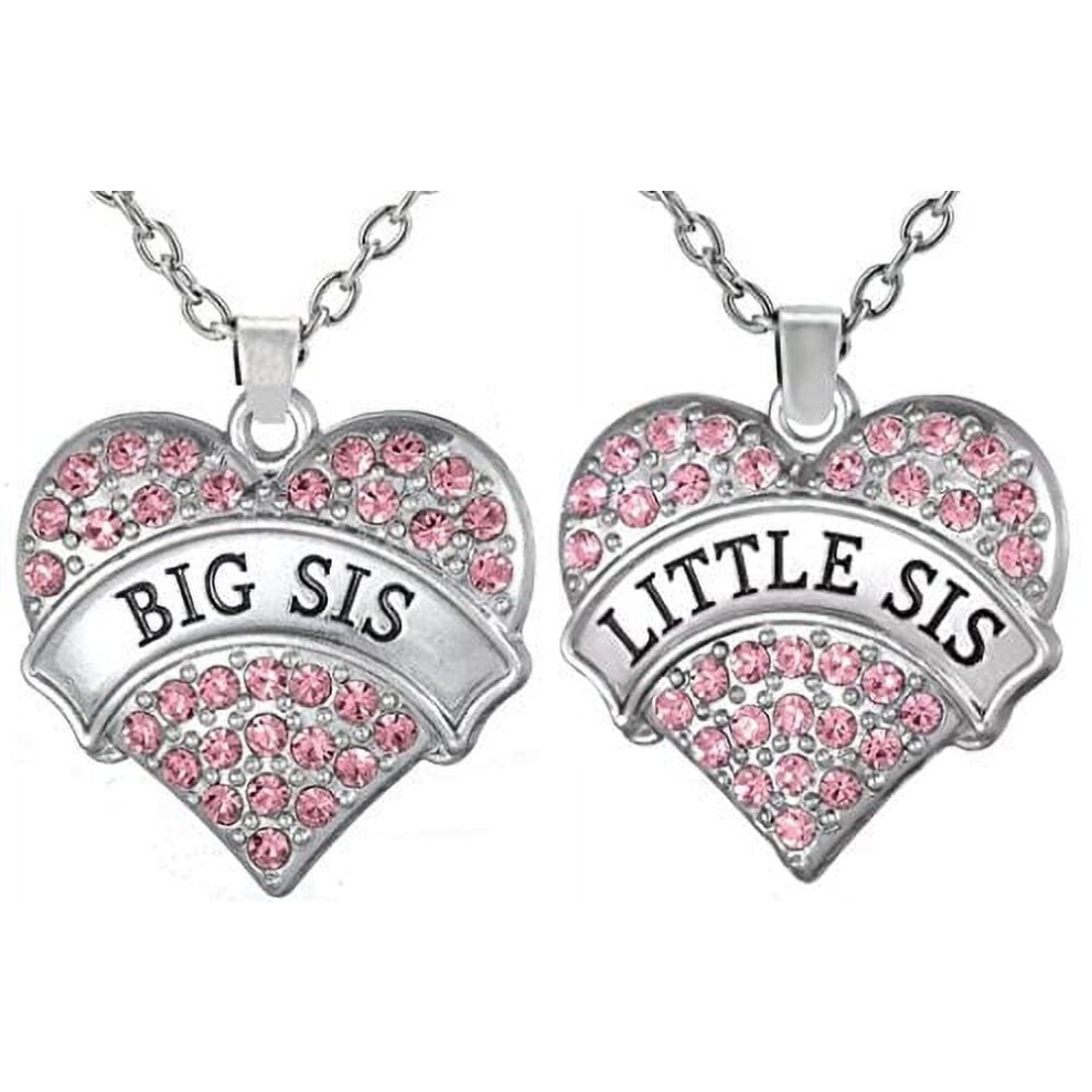 Valentine's Day Gifts, Big Sis & Lil Sis Heart Necklace Set, 2 Sister Necklaces, Big & Little Sisters Jewelry Set for Teens, Women (Pastel Pink)