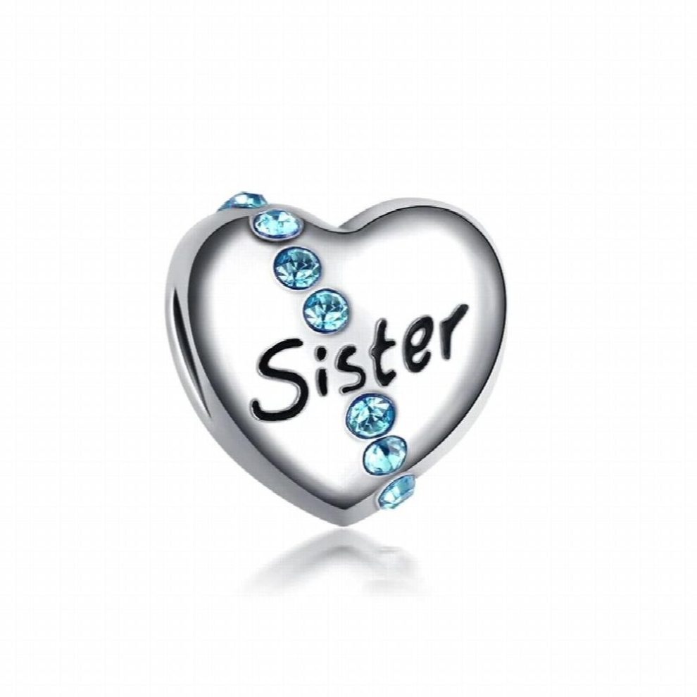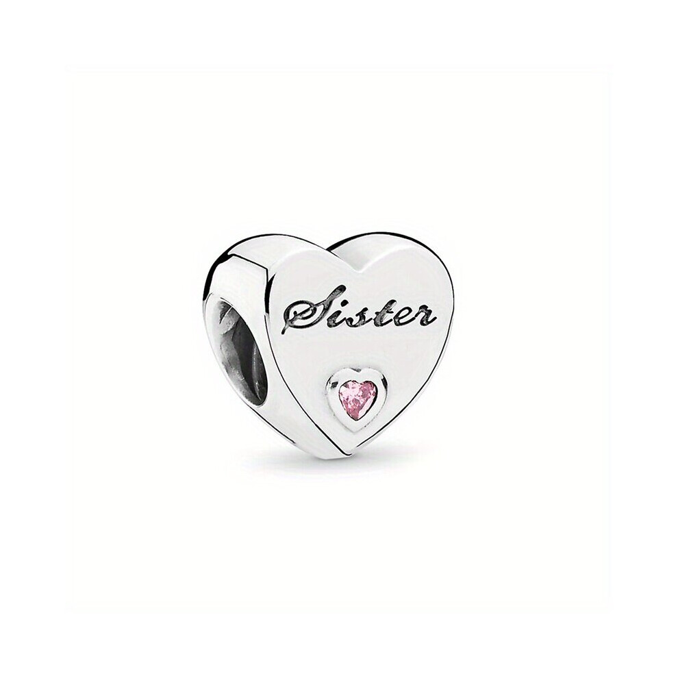 Silver Plated Sister Heart Charm Is Suitable For Snake Bracelets As Well As Various Necklaces