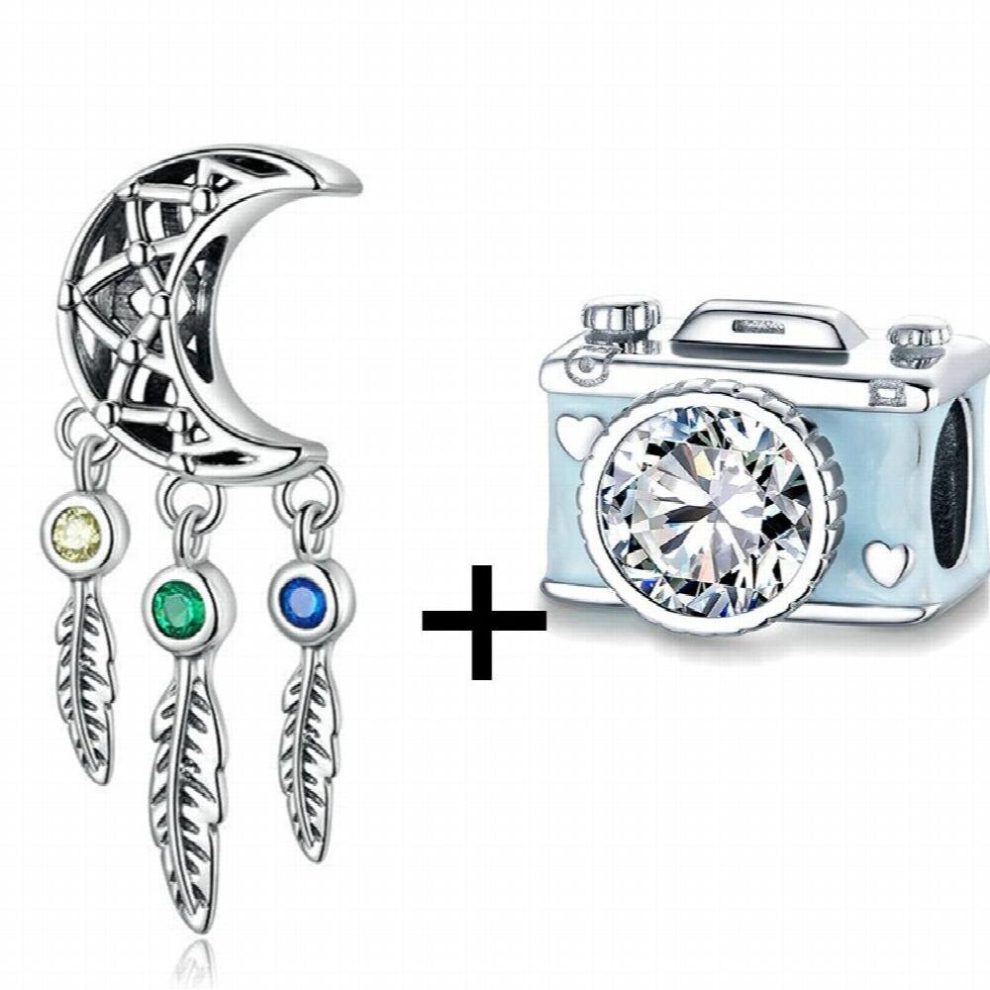 2Pcs/lot Real Silver Plated Sister Paw Camera Charm Beads Pendant DIY Bracelets Necklaces For Women Men Wife Sister Jewelry Gift