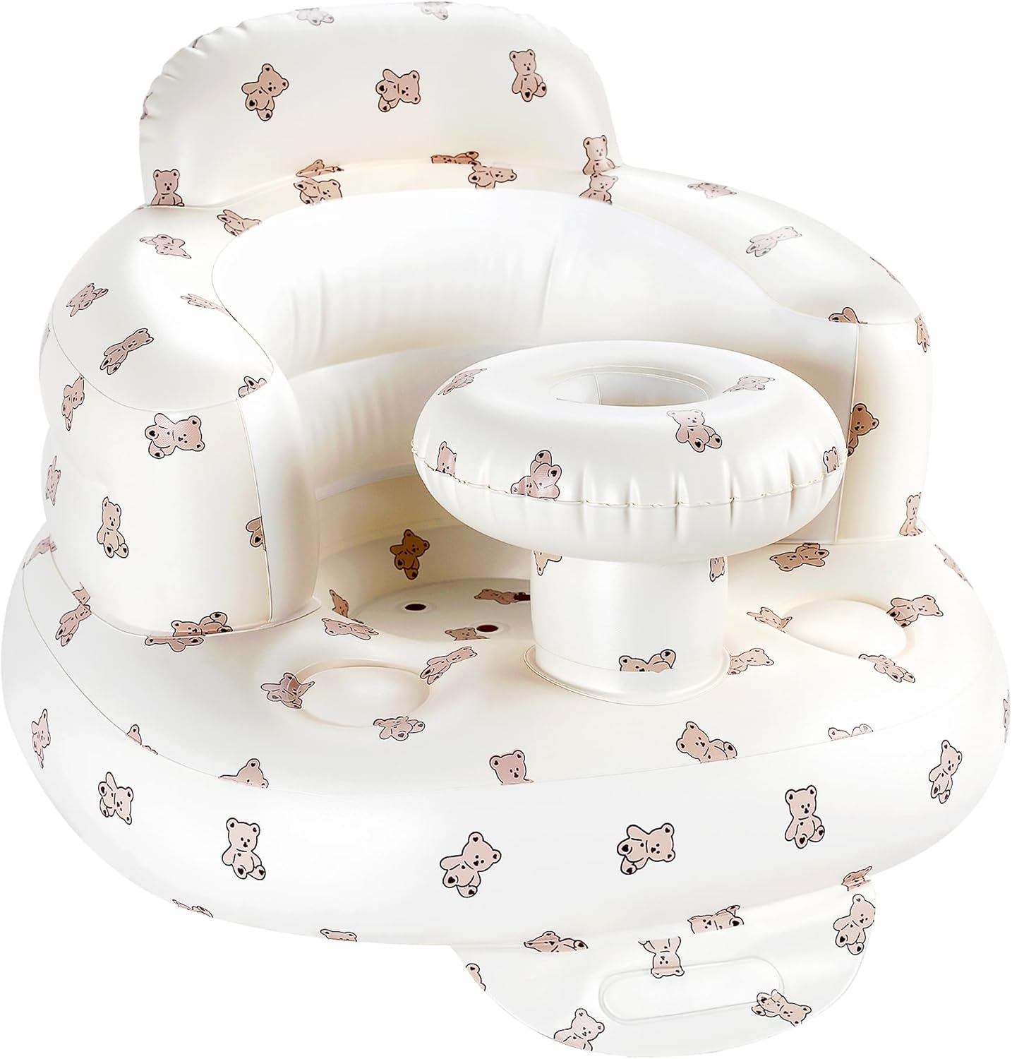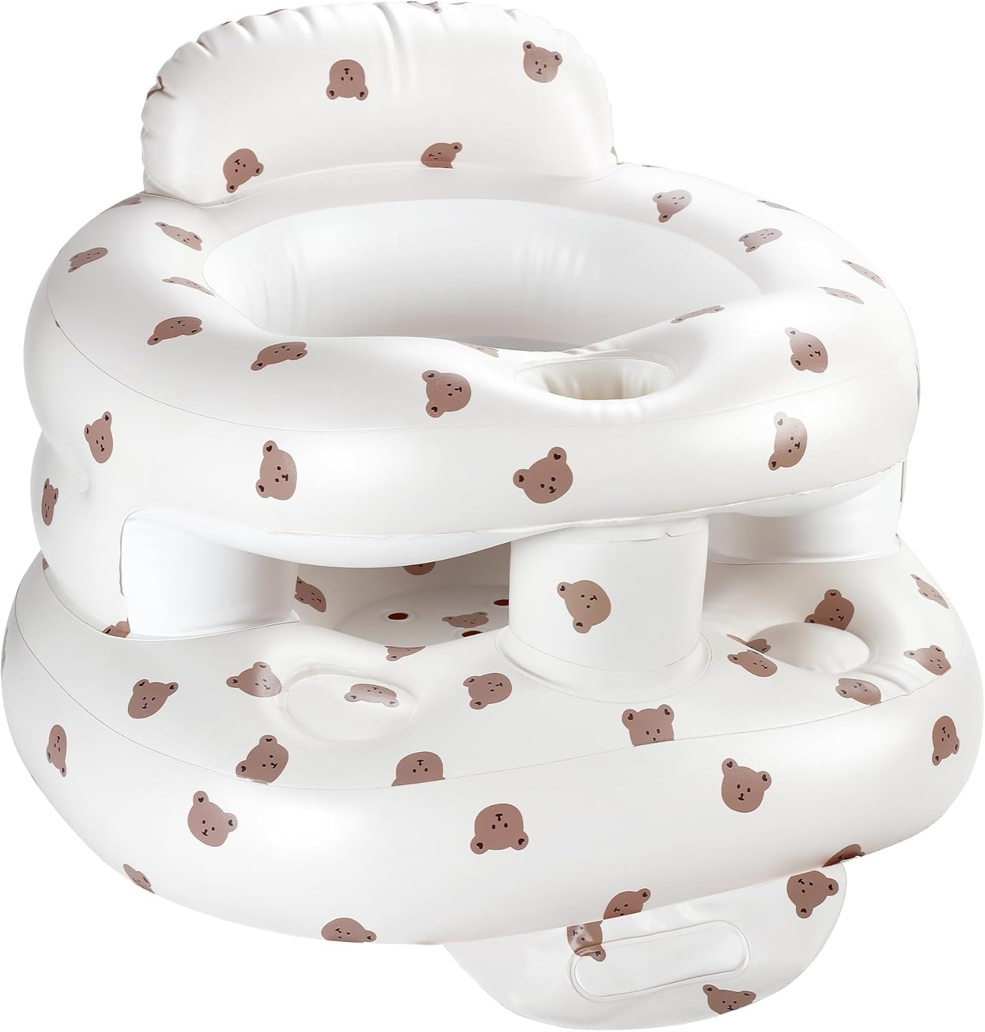 AirSwim Inflatable Baby Seat, Inflatable Baby Chair for Babies 3-36 Months, Portable Blow Up Chair with Built in Air Pump, Sit Me Up Floor Seat for Learning to Sit, Palying, Camping, Travel, Bear Head