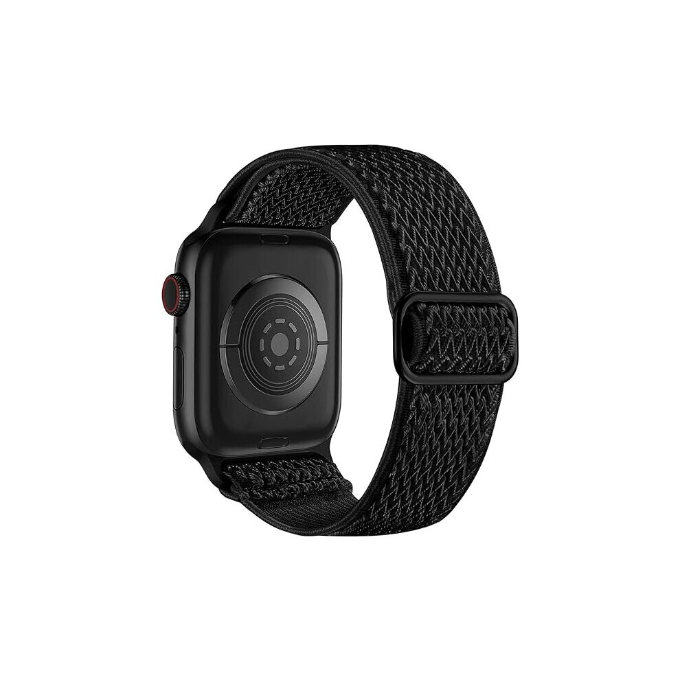 Elastic Bands Compatible with Apple Watch Bands,Stretchy Solo Loop Soft Nylon Strap Replacement Band for Women Men/Black/Size:49mm