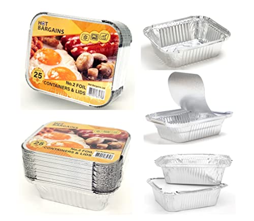 HOT BARGAINS Aluminium Foil Containers Size 2 with Lids, Pack of 100, 144 x 119 x 49mm