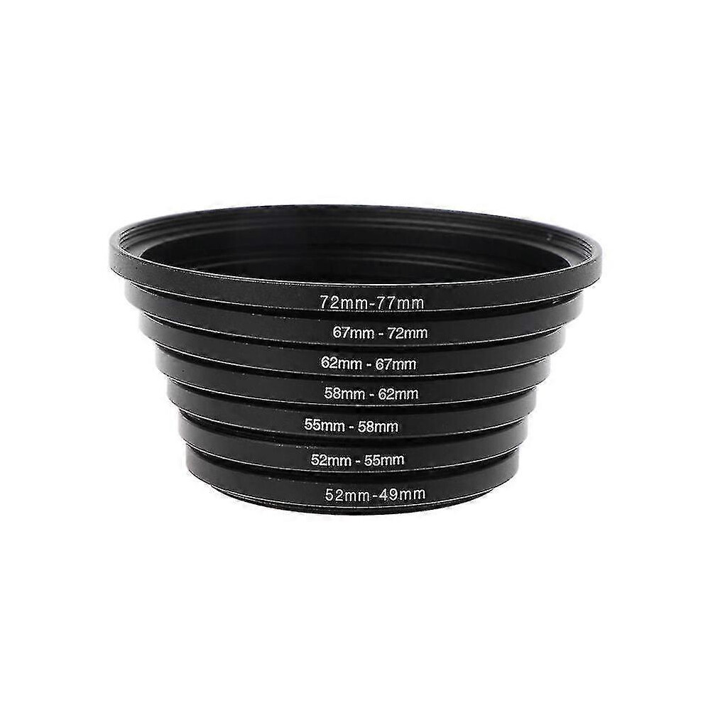 (As show, One size) 7pcs/set 49mm-77mm Universal Black Metal Aluminum Alloy Step-up Ring Common Camera Lens Adapter Filter Set Accessories