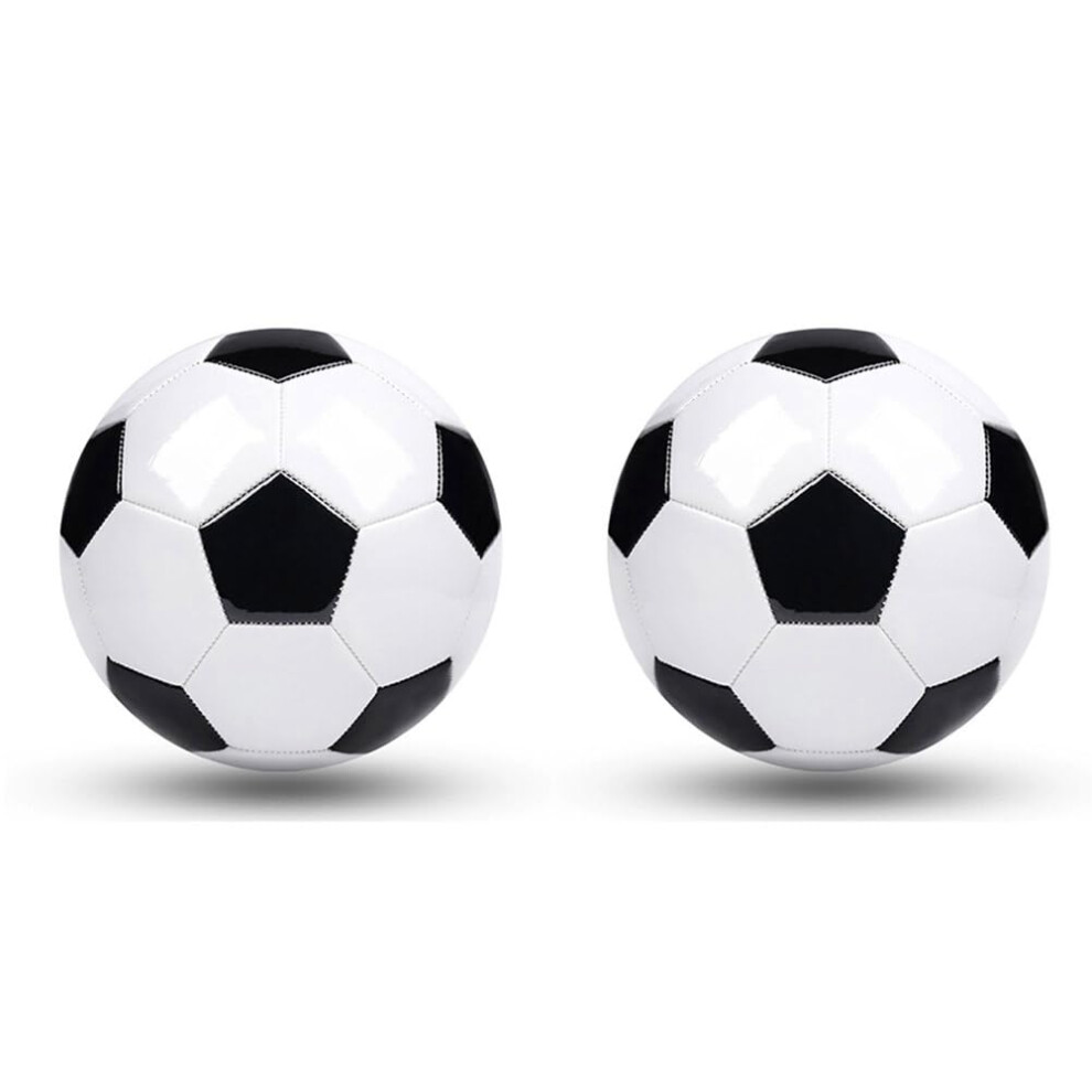 Size 5 Training Footballs - 2 Pack PU Leather Black White Soccer Balls for Team Practice and Goals