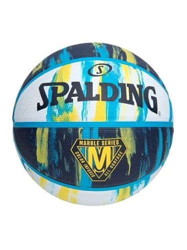 Spalding - Marble Series Navy-Volt - Size 7 - Rubber Basketball - Outdoor Basketball - Excellent Grip