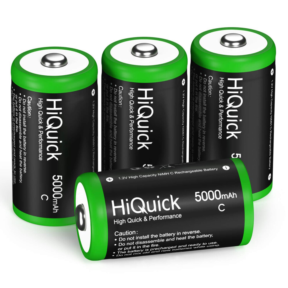 HiQuick Ni-MH C Size Rechargeable Batteries 5000mAh - 1.2V High Capacity C Batteries, Pack of 4