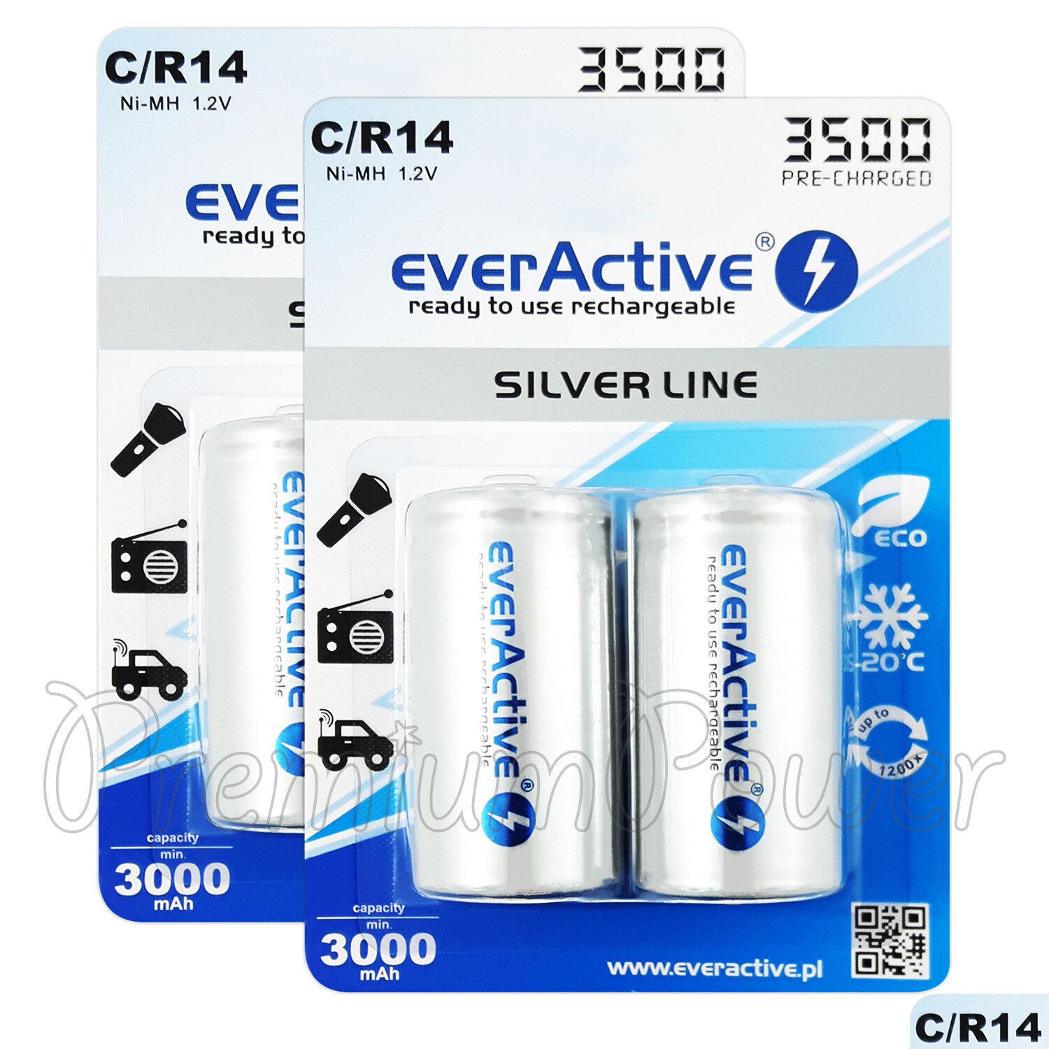 4 x everActive C Size Rechargeable batteries Silver Line 1.2V min 3000mAh Ni-MH