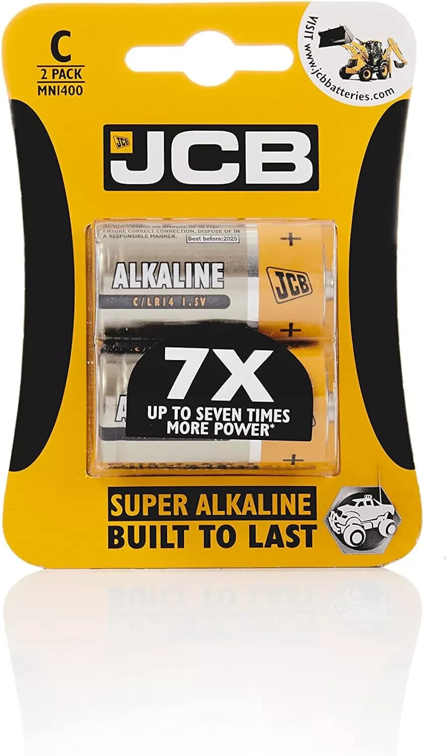 2x JCB C Size Super Alkaline Batteries LR14, MN1400, MX1400, Long Expiry