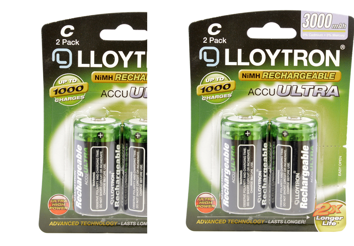 LLOYTRON NiMH Rechargeable AccuUltra Batteries / C Size / 3000mAh / 2 Pack - B0