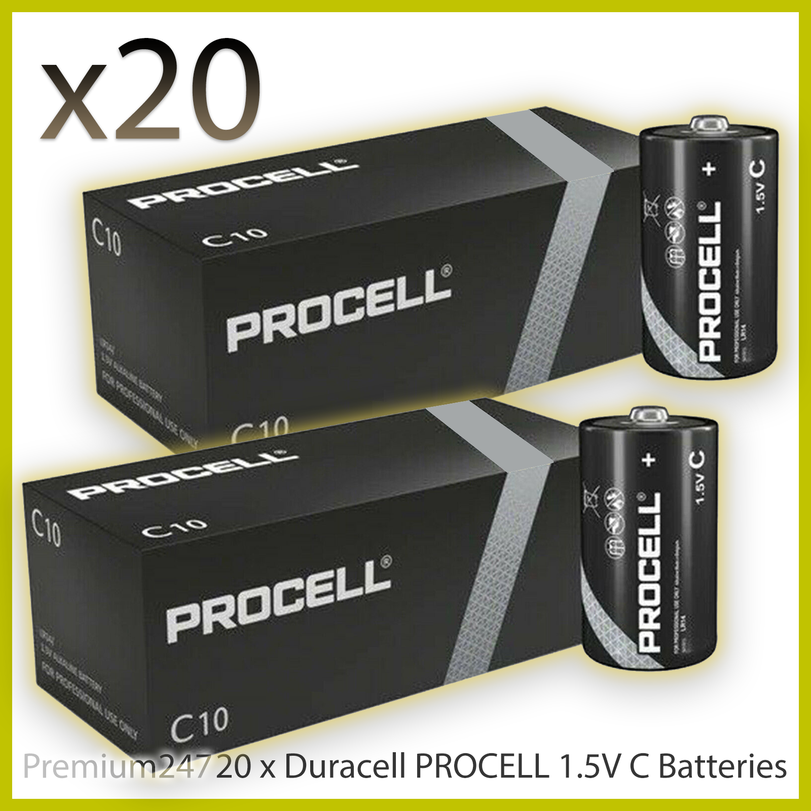 20x Duracell C Size Industrial Procell Alkaline Batteries LR14 MN1400 Baby UK