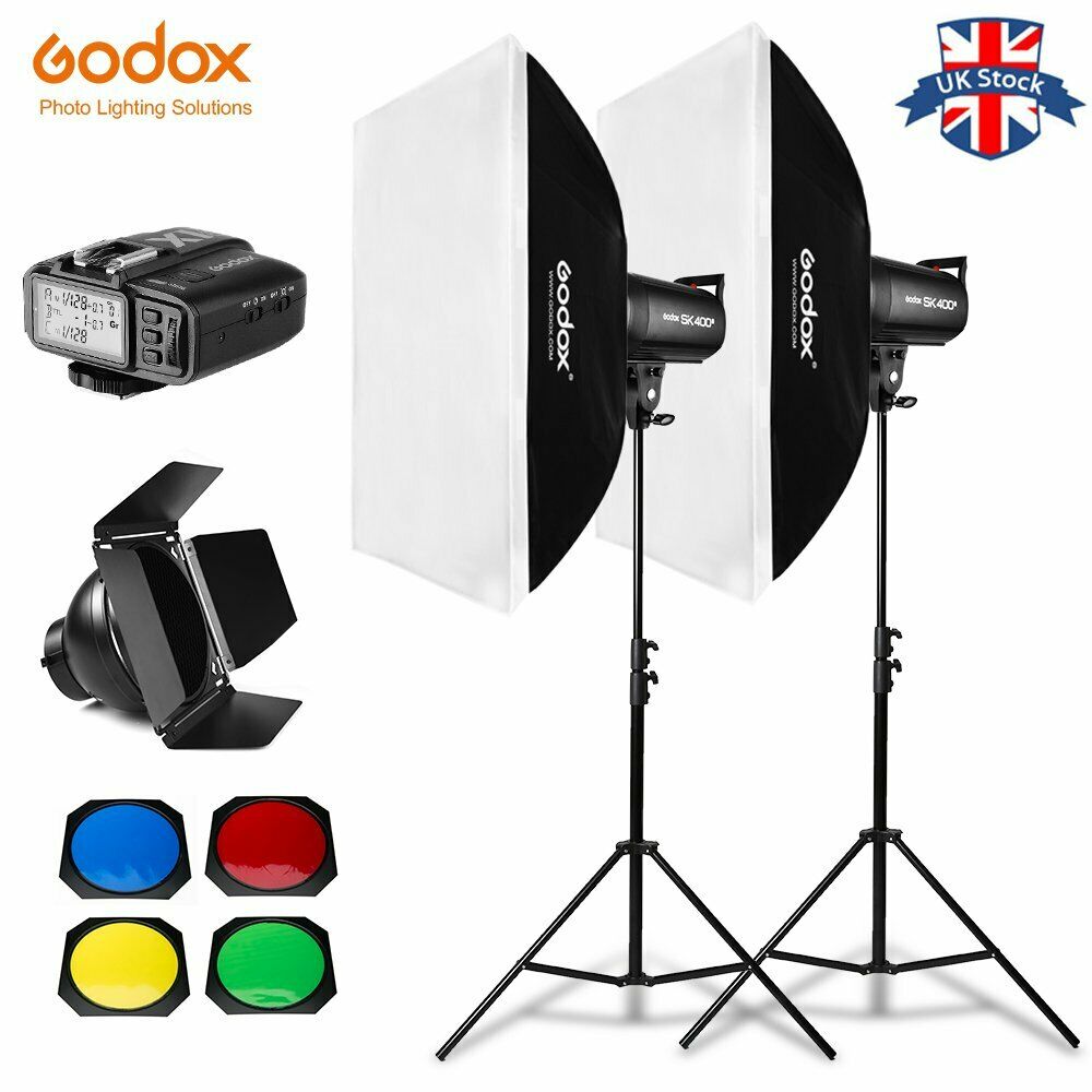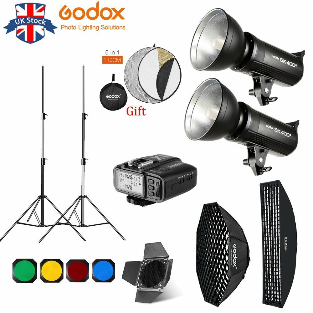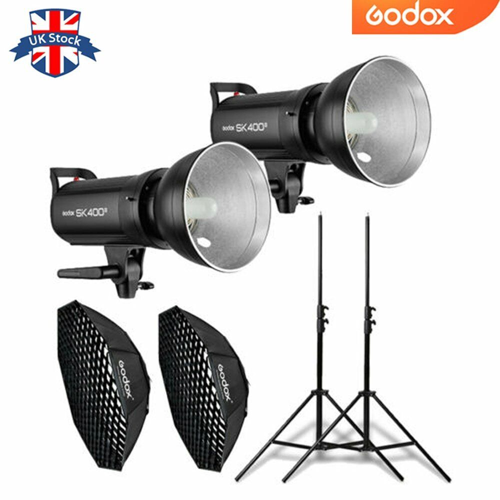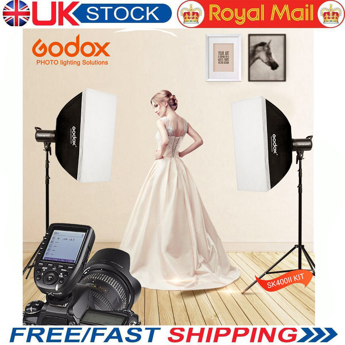 UK 2*Godox SK400II 400W 2.4G Studio Flash+95cm Grid softbox+2m light stand Kit