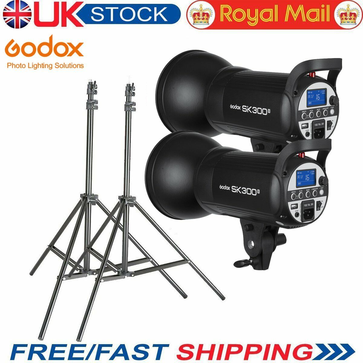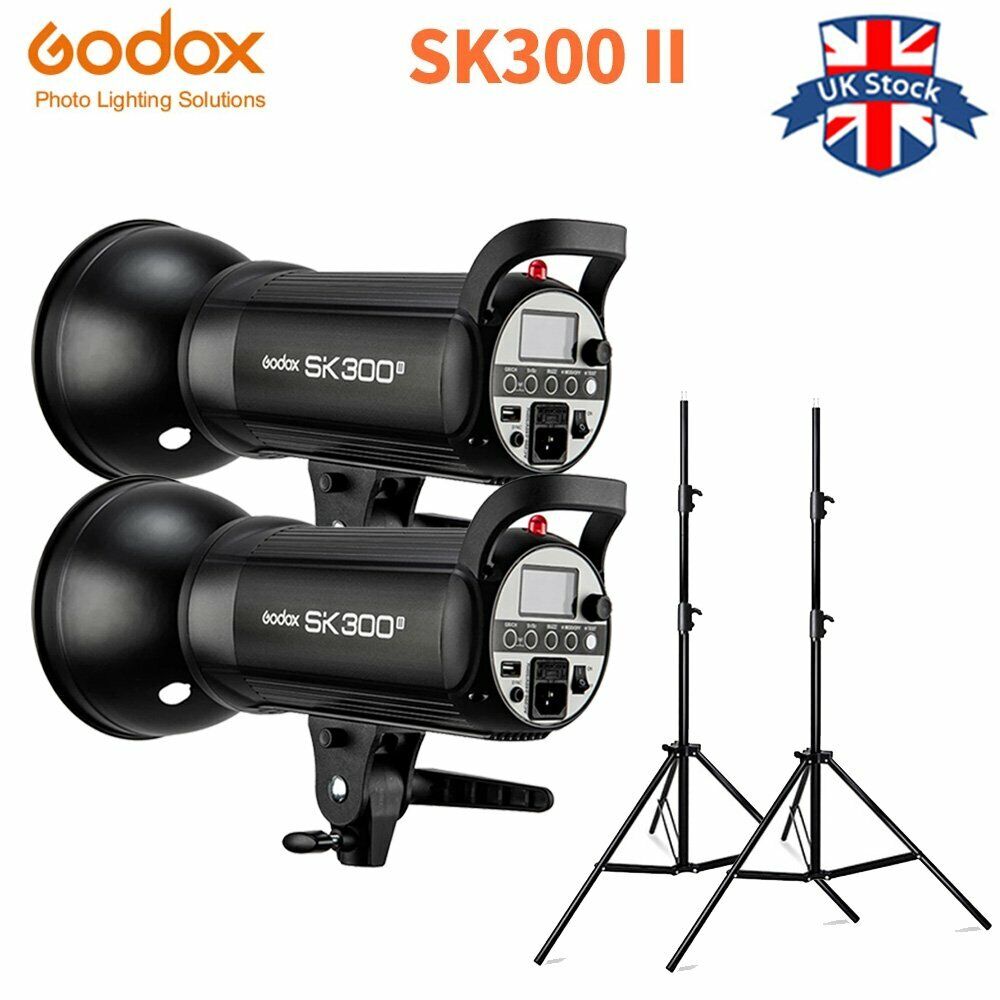 UK Godox 2* SK300II 300Ws GN58 Flash Strobe Speedlite Light + 2m Light Stand Kit