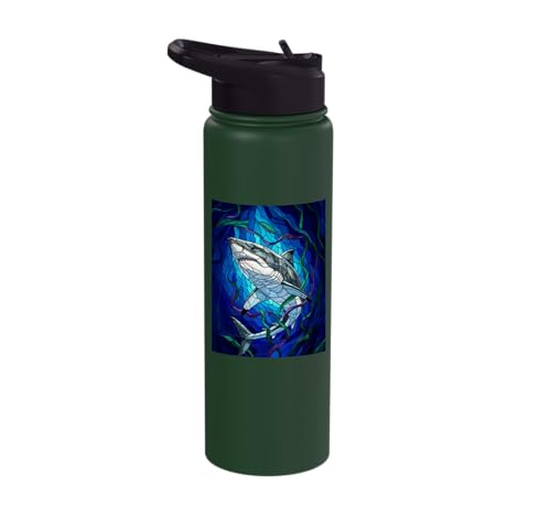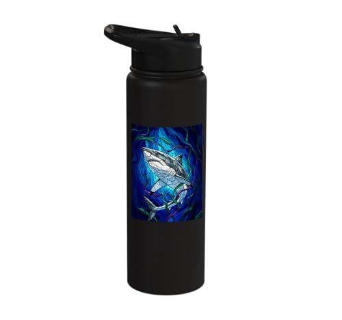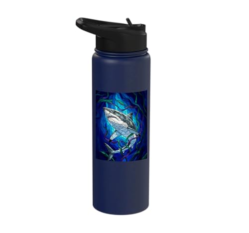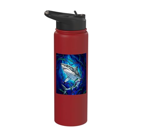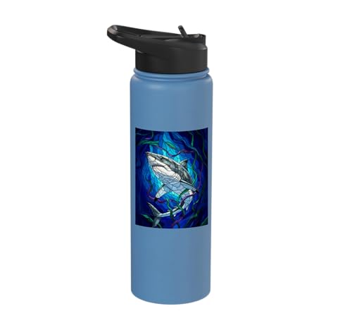 White Shark Mosaic Stained Glass Sea Animal Stainless Steel Insulated Water Bottle