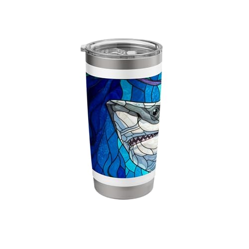 White Shark Mosaic Stained Glass Sea Animal Stainless Steel Insulated Tumbler