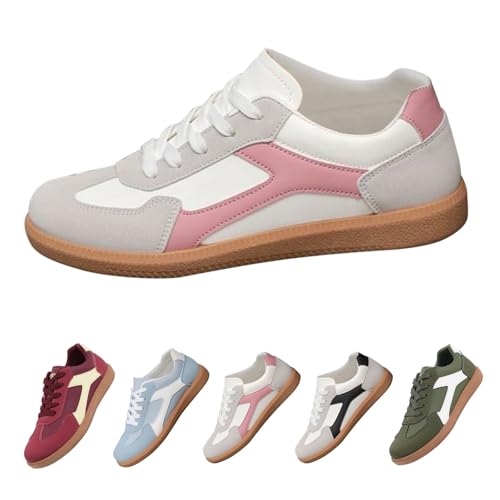 Retro Sneakers for Women Lace-Up Shoes Fashion Classic Casual Trainers Walking Shoes Non Slip Comfort Skate Shoe UK 5 Ladies #01_Pink Footwear