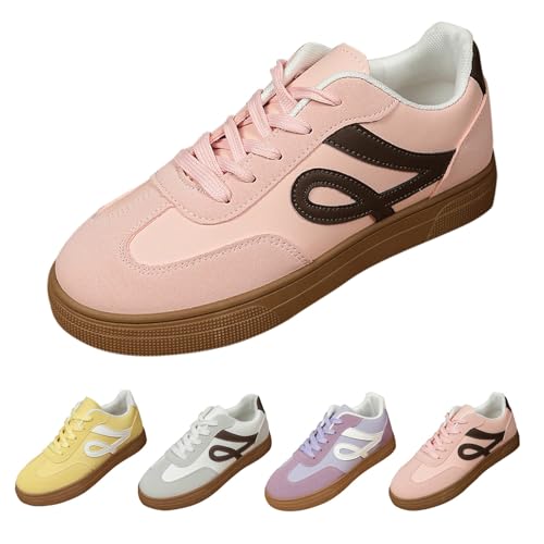 Retro Sneakers for Women Lace-Up Shoes Fashion Classic Casual Trainers Walking Shoes Non Slip Comfort Skate Shoe UK 5 Ladies #03_Pink Footwear