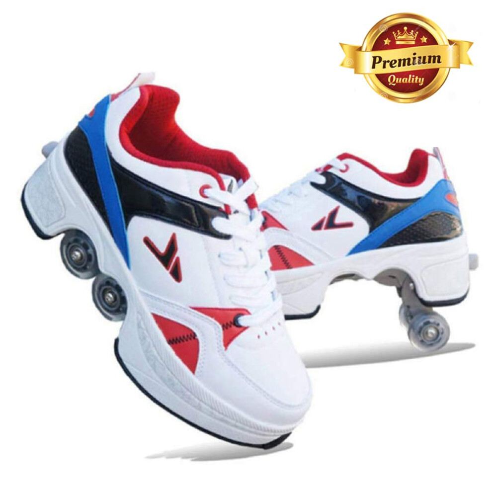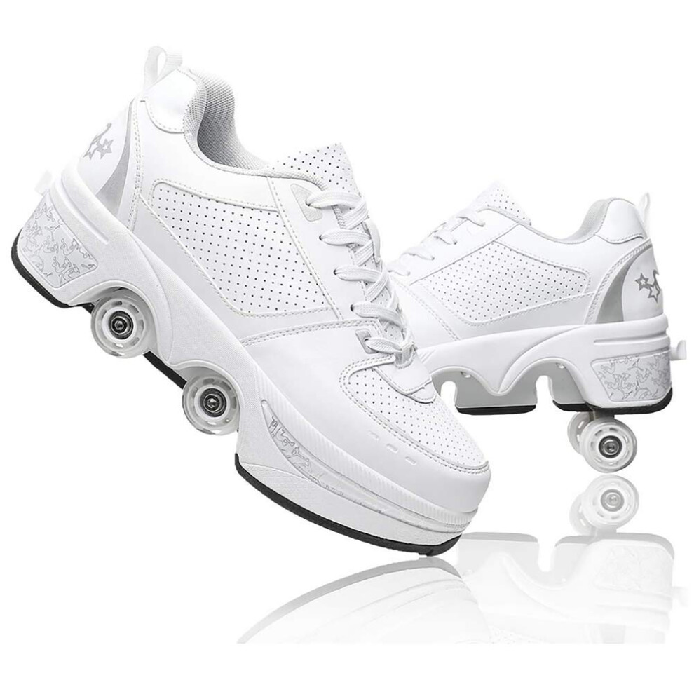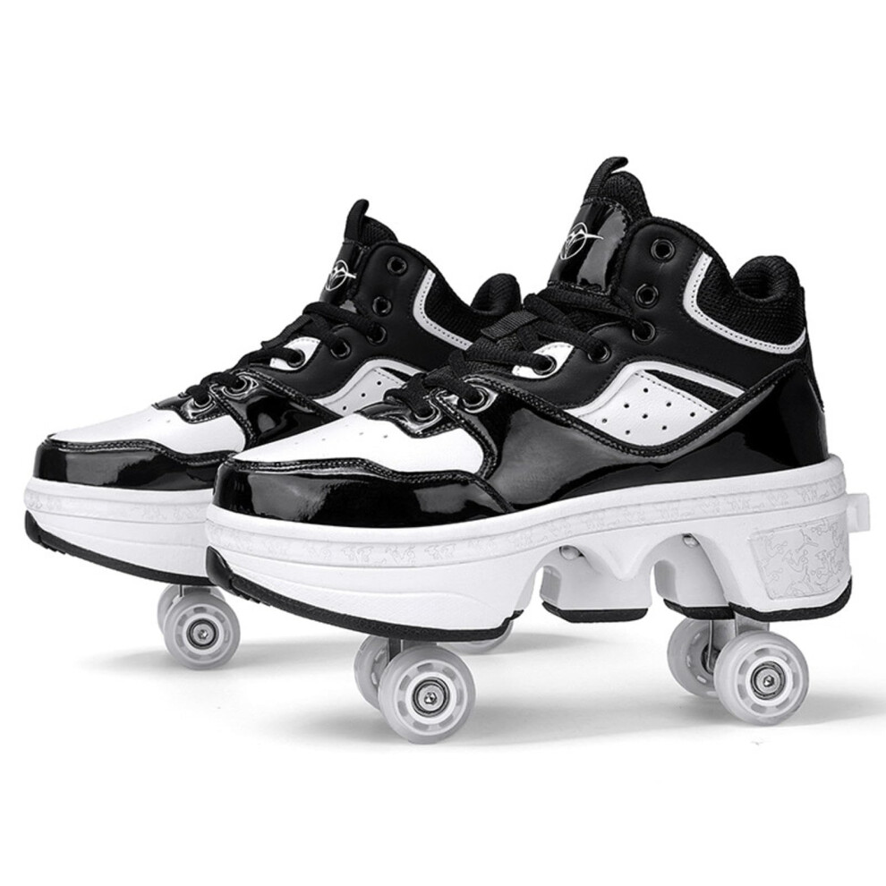 Roller Skate Shoes Women Men DoubleRow Roller Skates Retractable Turn Into Roller Skates Outdoor Sneakers