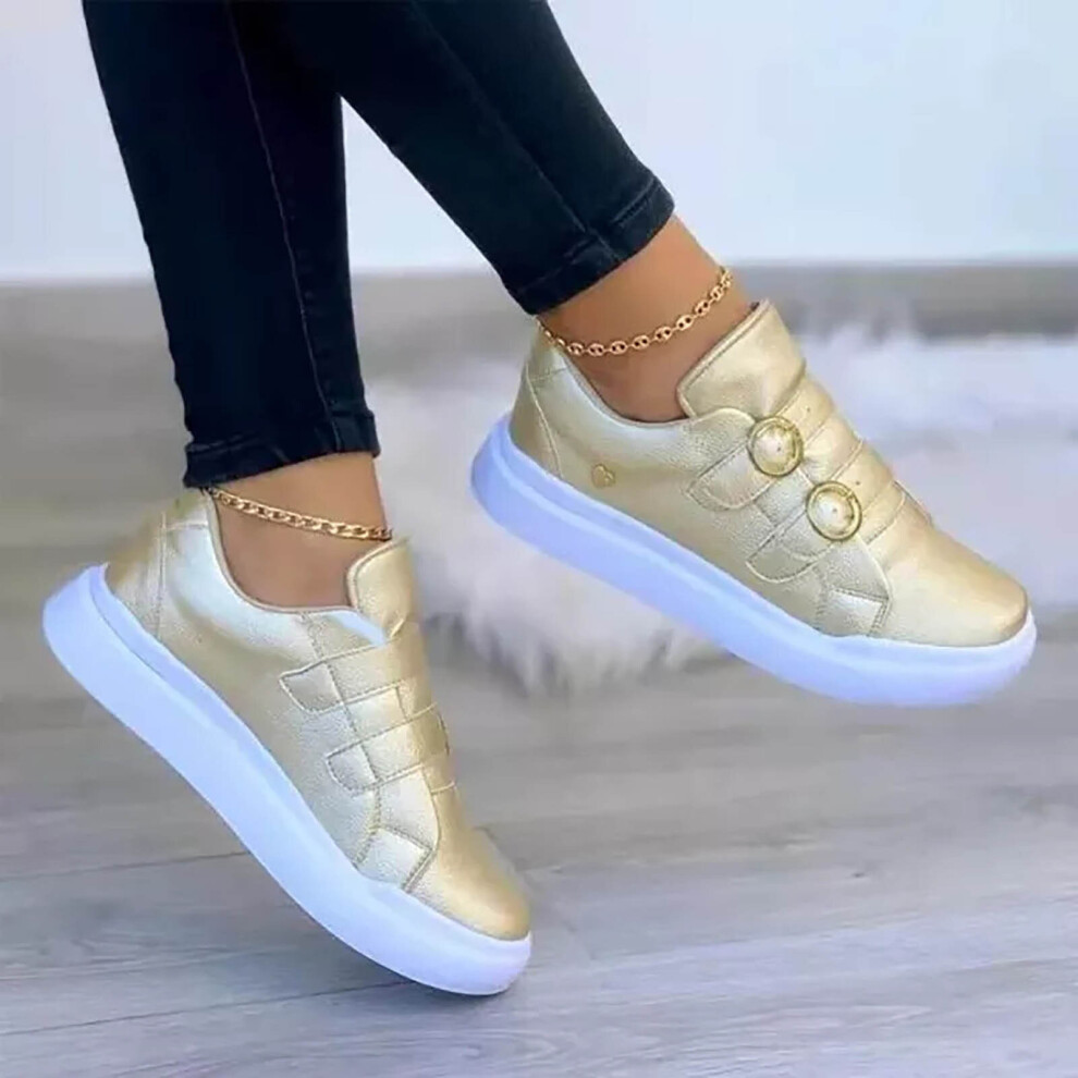 Shoe For Women Ladies Buckle Platform Shoes Casual Vulcanize Skate Shoes Breathable Golden Women Casual Shoes Zapatos