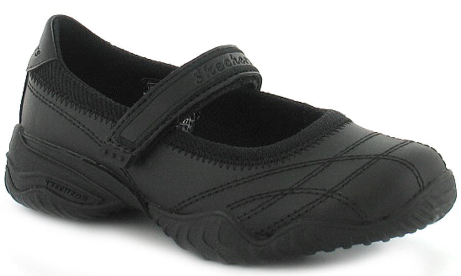 Skechers New Girls Black Leather School Shoes With Touch Fastening Imitation Leather - Size UK 2 Infant