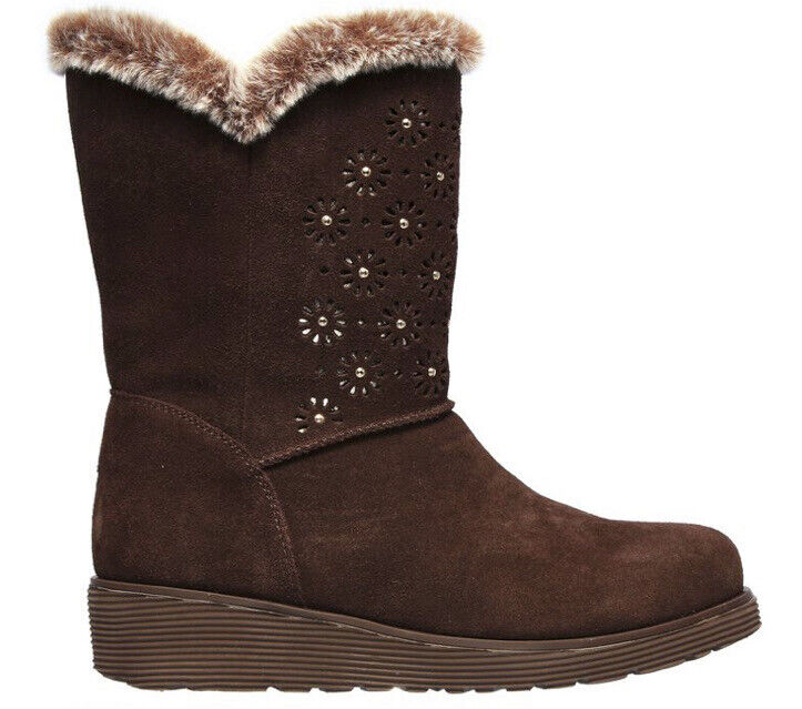 New Skechers 167115 Keepsakes Wedge Lovely Stud Ladies Brown Suede Ankle Boots