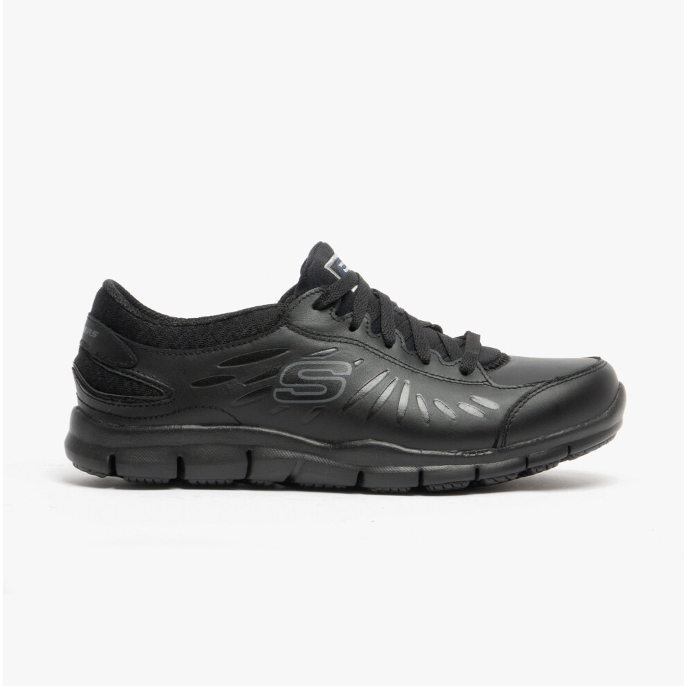 Skechers Work Ladies Black Slip Resistant Relaxed Fit Nam Safety Shoes, Size: 4