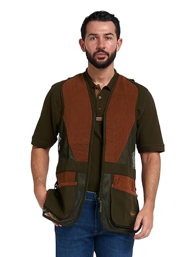 JACK PYKE Men’s Skeet Vest – Clay Pigeon Shooting Waistcoat with Breathable Mesh, Suede Trim & Multi Pockets – Lightweight Outdoor Hunting Jacket, Green Large