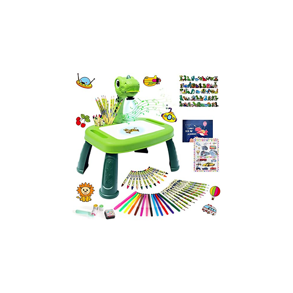 Detachable Legs Drawing Projector Table Bright Colors for Kids Smart Sketcher Toy Play (Green Dinosaur)