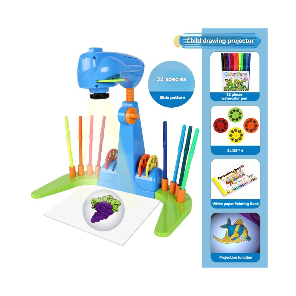 (Blue) Enjoy Myself Projection Toy Smart Kids Projection Drawing Sketcher Adjustable Art Sketcher Projector