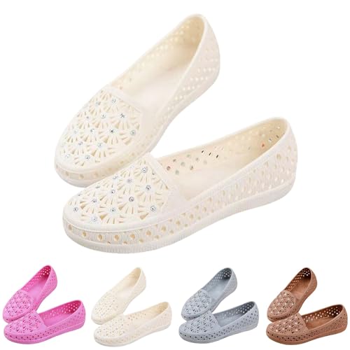 Womens Jelly Ballet Shoes Size 6 UK Clearance Rubber Closed Toe Flats Sandals Slip on Hollow Out Loafers Waterproof Shoes White Footwear Gifts