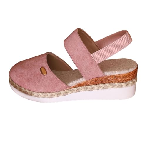 Momolaa Closed Toe Espadrille Wedge Sandals for Women Platform Slip on Elastic Sling Back Strap Wide Fit Stretch Sandal Comfortable Casual Summer Wedges Shoes Ladies Footwear size 7 Pink