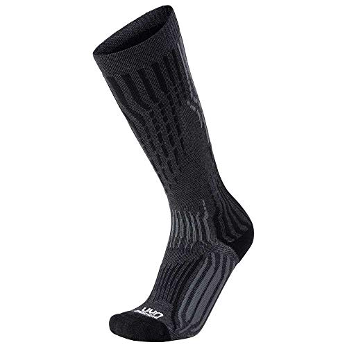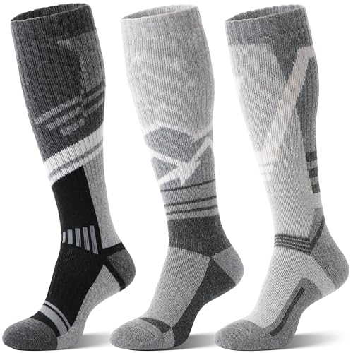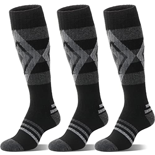 Merino Wool Ski Socks for Mens Womens Winter Thermal Warm Heated Thick Knee High Snowboarding Skiing Socks for Cold Weather 3 Pairs Gifts Stocking Fillers(Black Grey,L)