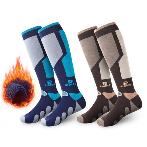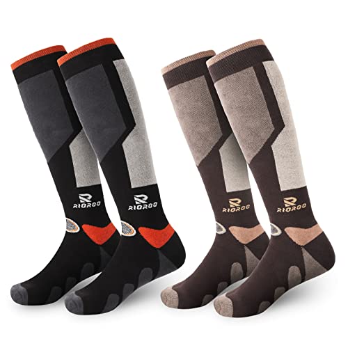 RIOROO Mens Ski Socks, 2 Pairs Mens High Performance Thermal Knee High Winter Socks for Skiing, Sowboard, Hiking, Walking, Trekking, Long and Warm