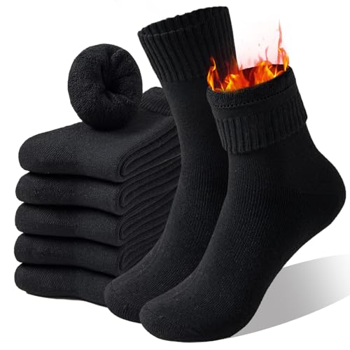 Josnown 5 Pairs Men's Thermal Socks - Thick Cushioned Lining, Cosy Warm Winter Wool Crew Boot Socks for Working, Hiking, Walking, Skiing, Indoors and Outdoors, UK Sizes 6-11.