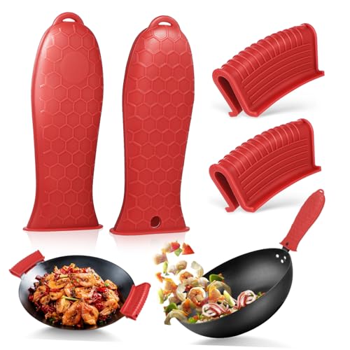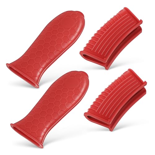 1 Pack Pot Handle Holders with Handle Grips, Silicone Heat Resistant Non-Slip Pot Handle Covers for Cookware Cast Iron Skillet Metal Pan - Red