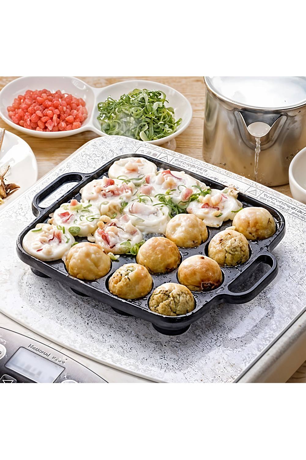 Living and Home 16-Hole Square Cast Iron Takoyaki Pan with Handles Skillet Frying Pan Cookware in Black