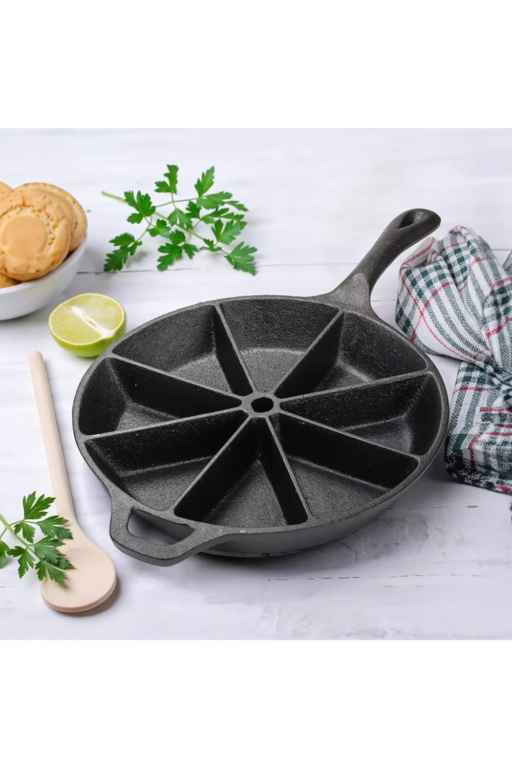 Living and Home Non-stick 8-edges Cast Iron Cornbread Pan Bakeware Skillet Cake Pan Cookware for Scones Biscuit Tatin in Black