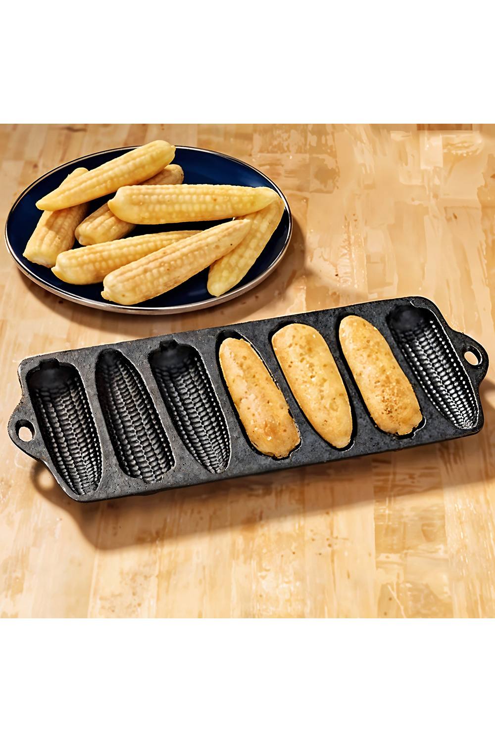 Living and Home 7-Slot 2-Handled Cast Iron Corn Pan Skillet Frying Pan Cookware in Black