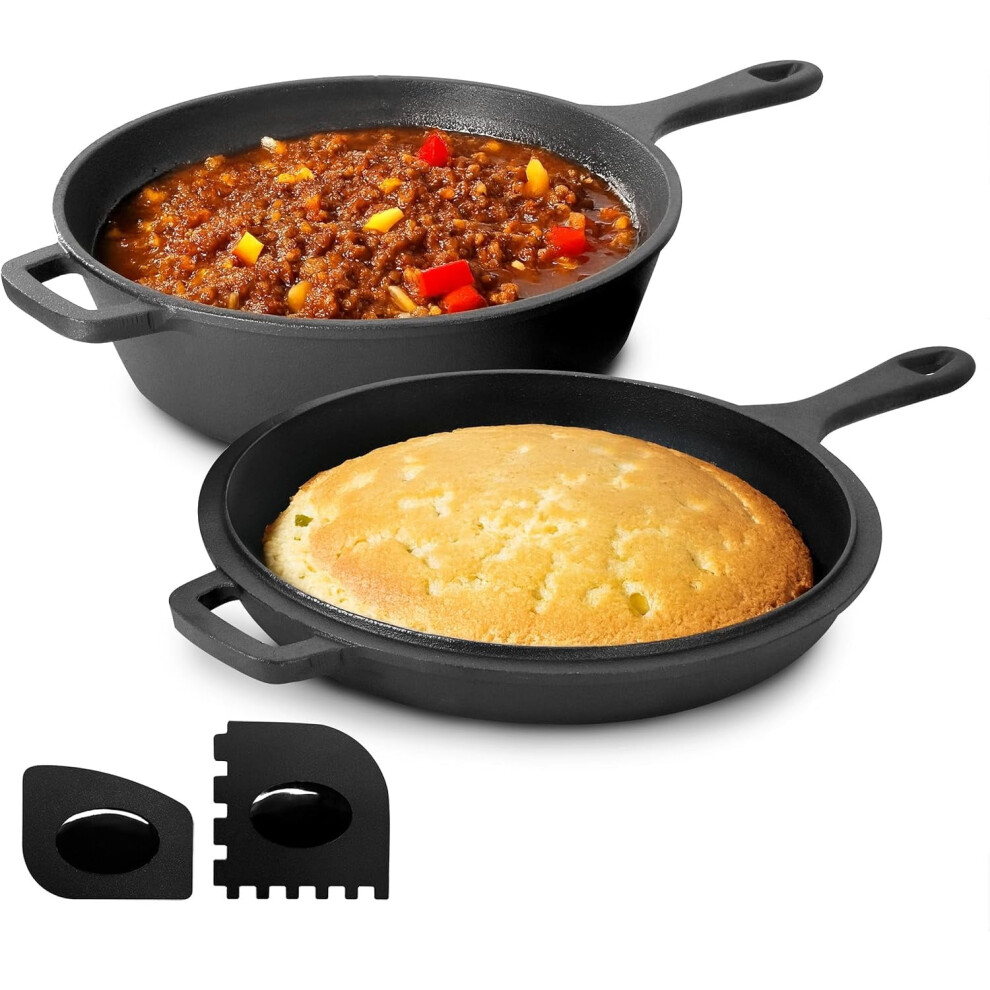 10.5 Inch 2-in-1 Pre-Seasoned Cast Iron Skillet and Fry Pan Set