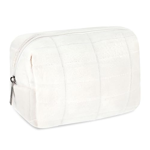 Gjinxi Cosmetic Bags for Women, Plush Zipper Solid Color Travel Toiletry Bag, White Travel Kit Storage Makeup Pouch, Coin Purse Lipstick Cosmetic Accessories Organizer, Skincare Bag for Women Girl