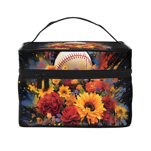 HSYOYO Makeup Bag for Women Travel Cosmetic Bag Large Makeup Case Portable Toiletry Skincare Organizer Bag, Baseball Flowers, One Size