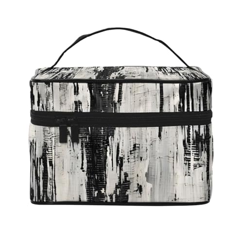 HSYOYO Makeup Bag for Women Travel Cosmetic Bag Large Makeup Case Portable Toiletry Skincare Organizer Bag, Grey Abstract Printing, One Size
