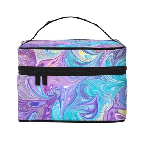 HSYOYO Makeup Bag for Women Travel Cosmetic Bag Large Makeup Case Portable Toiletry Skincare Organizer Bag, Neon Marble, One Size