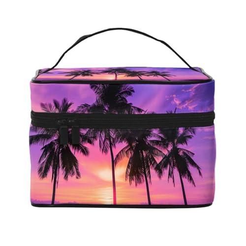 HSYOYO Makeup Bag for Women Travel Cosmetic Bag Large Makeup Case Portable Toiletry Skincare Organizer Bag, Purple Beach Tree, One Size